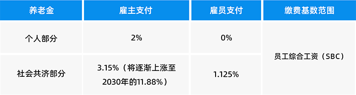 (2) 仅由雇主缴纳,缴纳费率为1%,缴纳基数为员工综合工资(SBC)。