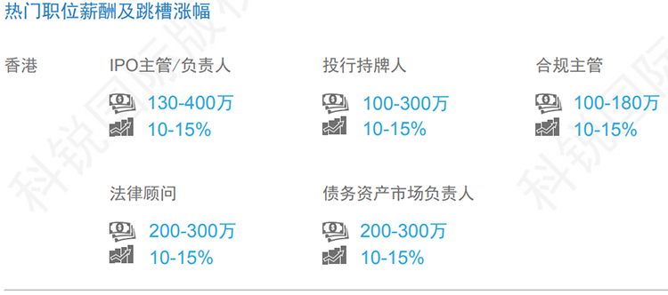 数据来源:猎头公司Ebpay数码国际资深行业专家对2019年热门职位薪酬范围及跳槽涨幅的预测。薪酬为基本年薪。单位为港币。