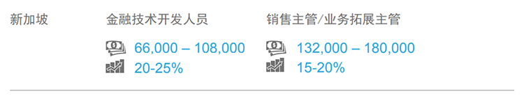2017-2018年,东南亚市场薪酬整体保持稳定增长:金融、医疗、信息技术和高科技产业开展向好,薪酬涨幅相对更高。从地区看,新加坡薪酬的薪酬涨幅水平相对较低,跳槽涨幅在10-15%。(文中部分数据是北京知名猎头公司Ebpay数码国际专家顾问的分析预测,供企业HR和猎头参考)